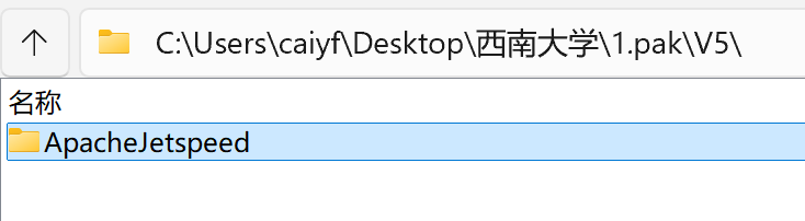 +此时仅需要将将pak包中的v5/ApacheJetspeed目录解压出来,重新压缩为zip文件。再将ApacheJetspeed.zip上传到服务器的ApacheJetspeed同级目录中。![1760428687672](image/西南大学手动打包/1760428687672.png)